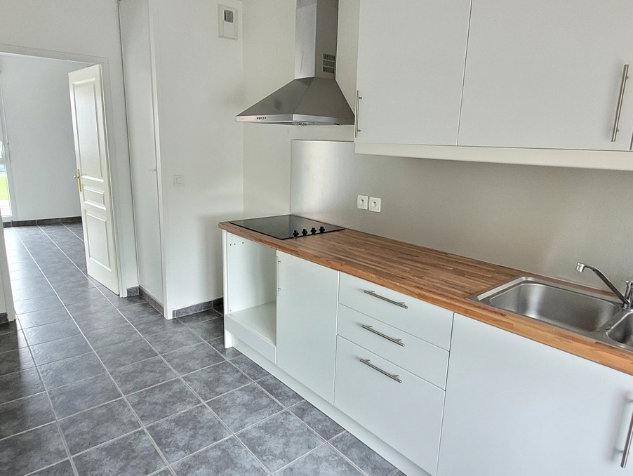 Situé à deux pas du centre ville dans une rue calme, belle maison de construction récente de 106 m² offrant : Hall d'entrée avec placards, WC, séjour lumineux donnant sur jardin, cuisine séparée équipée, un garage.